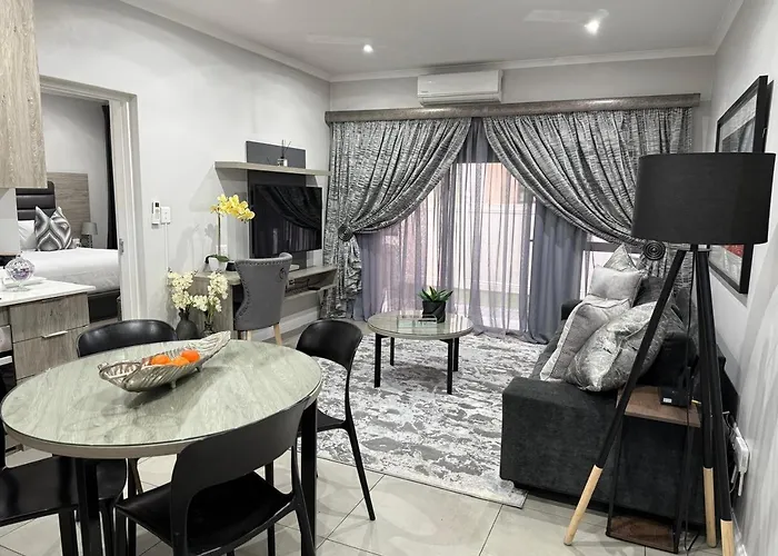 The spacious 1-bedroom Nyk Creations Luxury Apartments Johannesburg is located in Johannesburg, approximately 5 minutes' walk from Rivers Church, and offers guests a private swimming pool and a fitness suite. This 90 m² apartment is merely 1.8 km from Investec Investment Bank in Johannesburg.